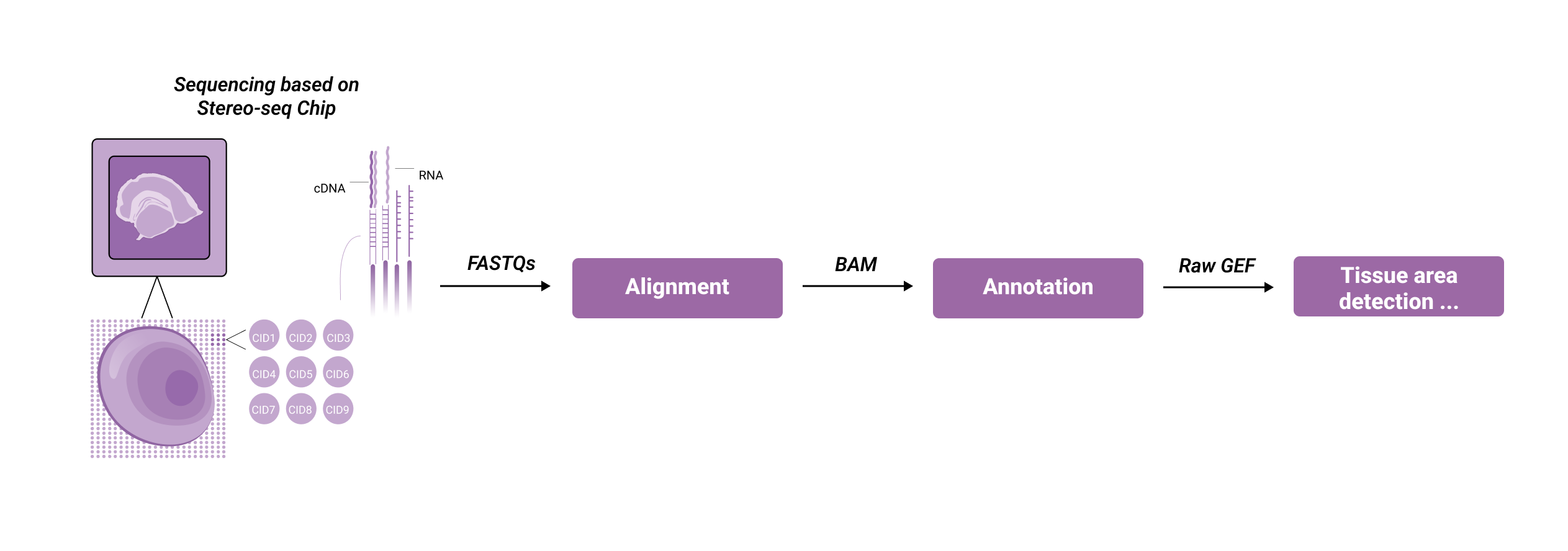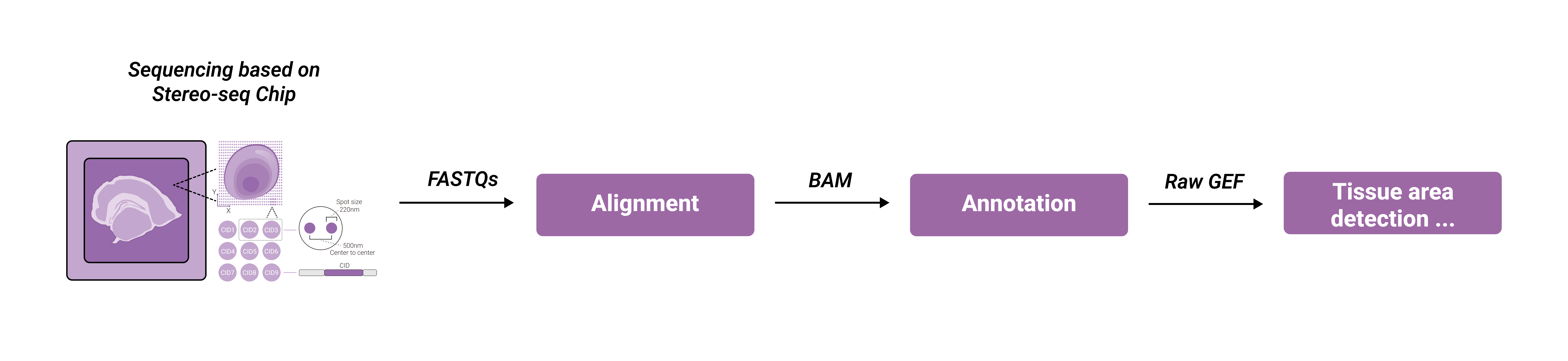 Gene Expression Count during SAW count, for the FASTQ data from the Stereo-seq sequencing platform, includes the following analysis stages: